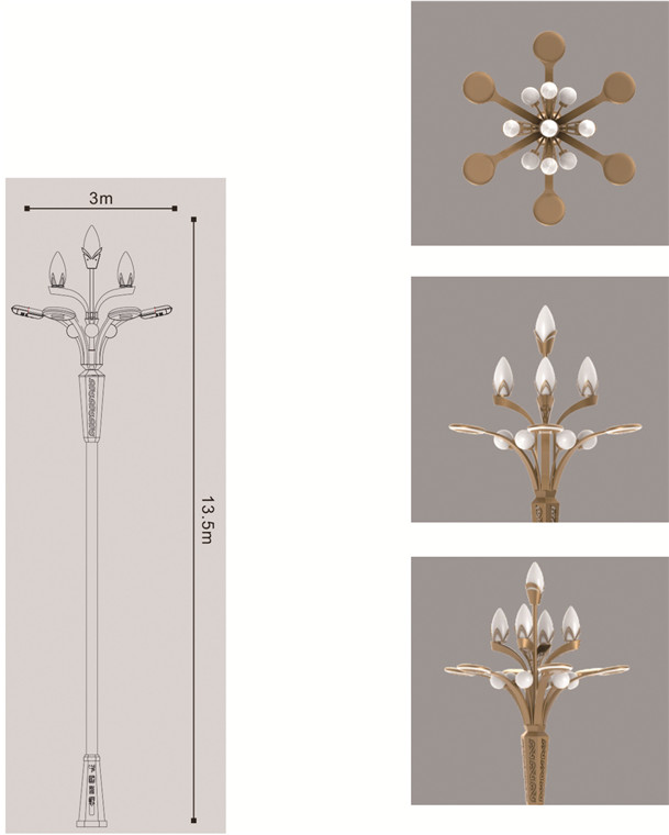* 根據(jù)道路情況 燈桿表面顏色可根據(jù)客戶選定,燈桿高度可調(diào)范圍8~12米,光源功率可調(diào)。
