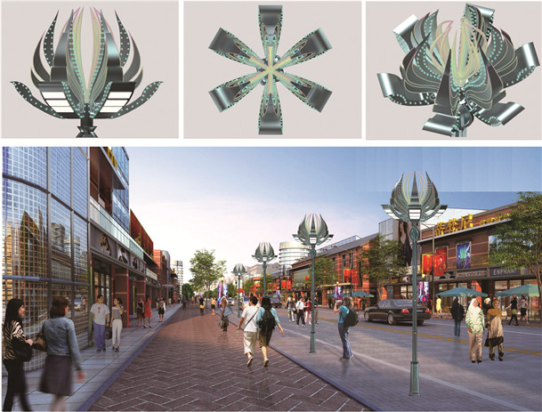 設(shè)計(jì)理念: “蓮花”景觀路燈造型區(qū)別于荷花,采用綻放時(shí)的蓮