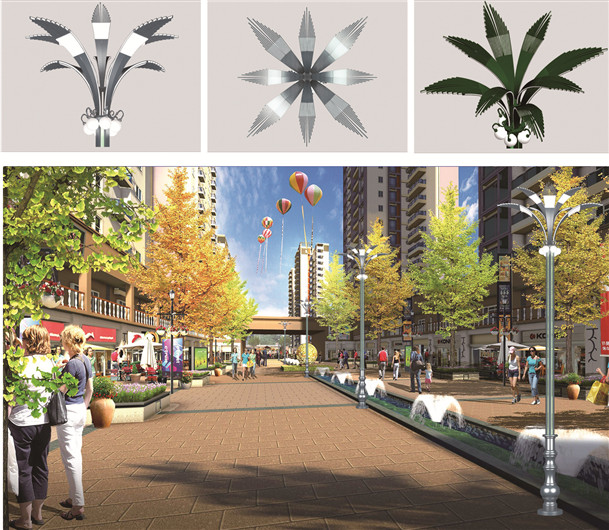 設(shè)計理念: “椰子”景觀路燈采用椰樹樣式,植物造型與周圍場景
